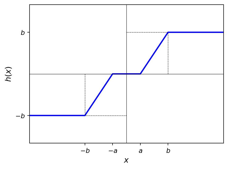 Consider the following limiter with center-level clipping, \(h(x)\):